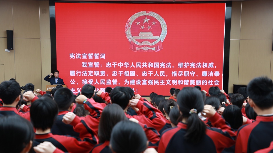 12月4日,我国迎来第十二个国家宪法日。北京师范大学附属中学以“青春与宪法同行”为主题,精心策划并开展法治教育周系列活动,通过沉浸式、互动式的学习体验,让宪法精神可感可知,在青少年心中落地生根。