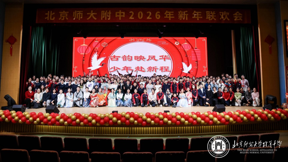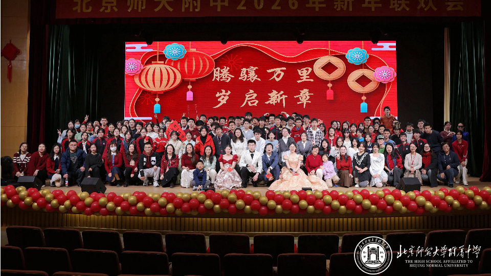 弦歌不辍迎新年,青春飞扬谱华章。2025年12月31日,北京师范大学附属中学初二年级“青春绽放,逐梦新元”元旦联欢会在附中百年会堂举行。师...