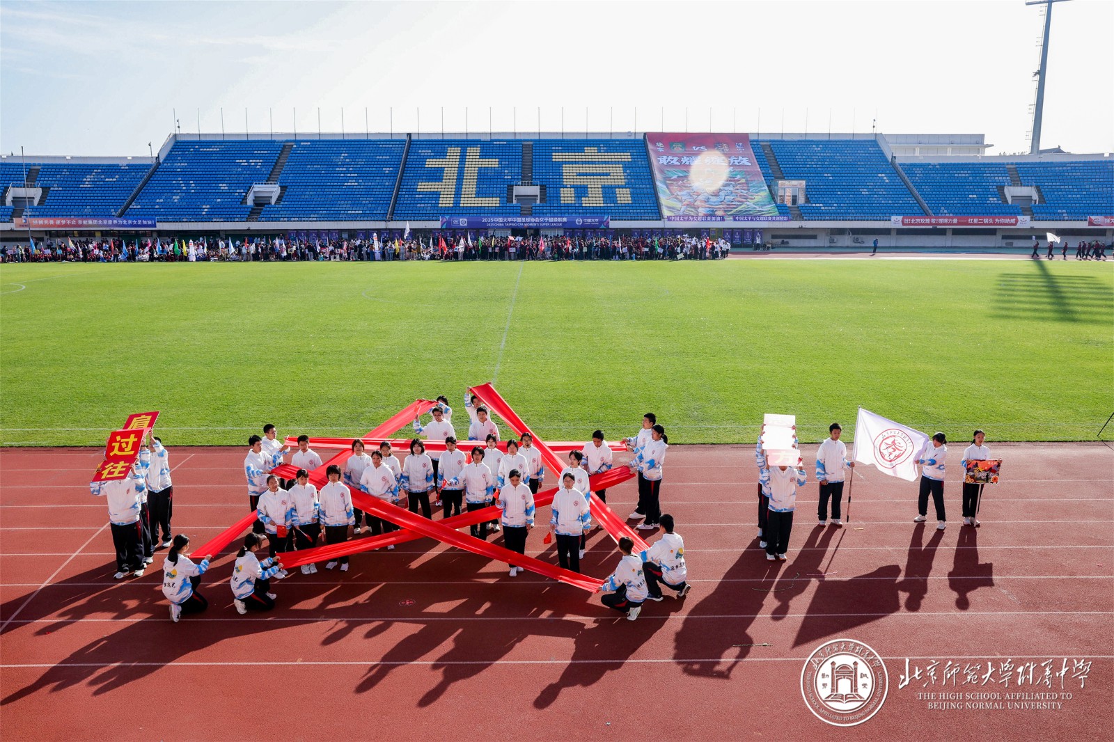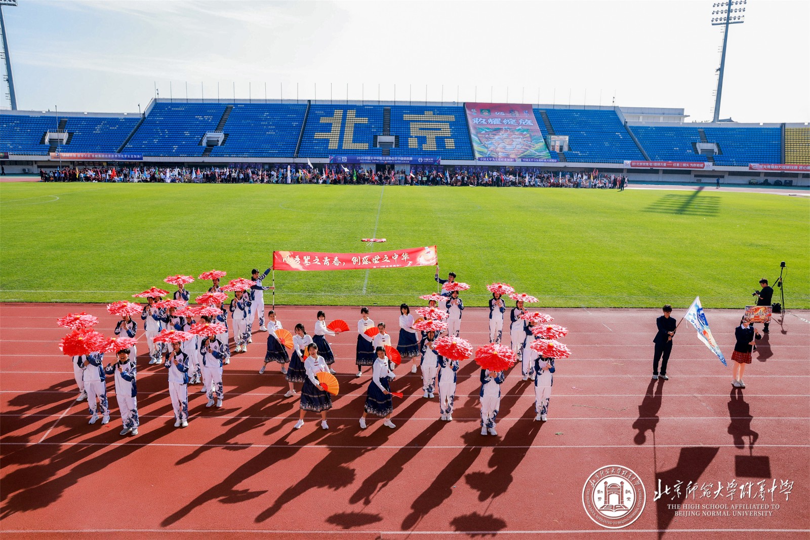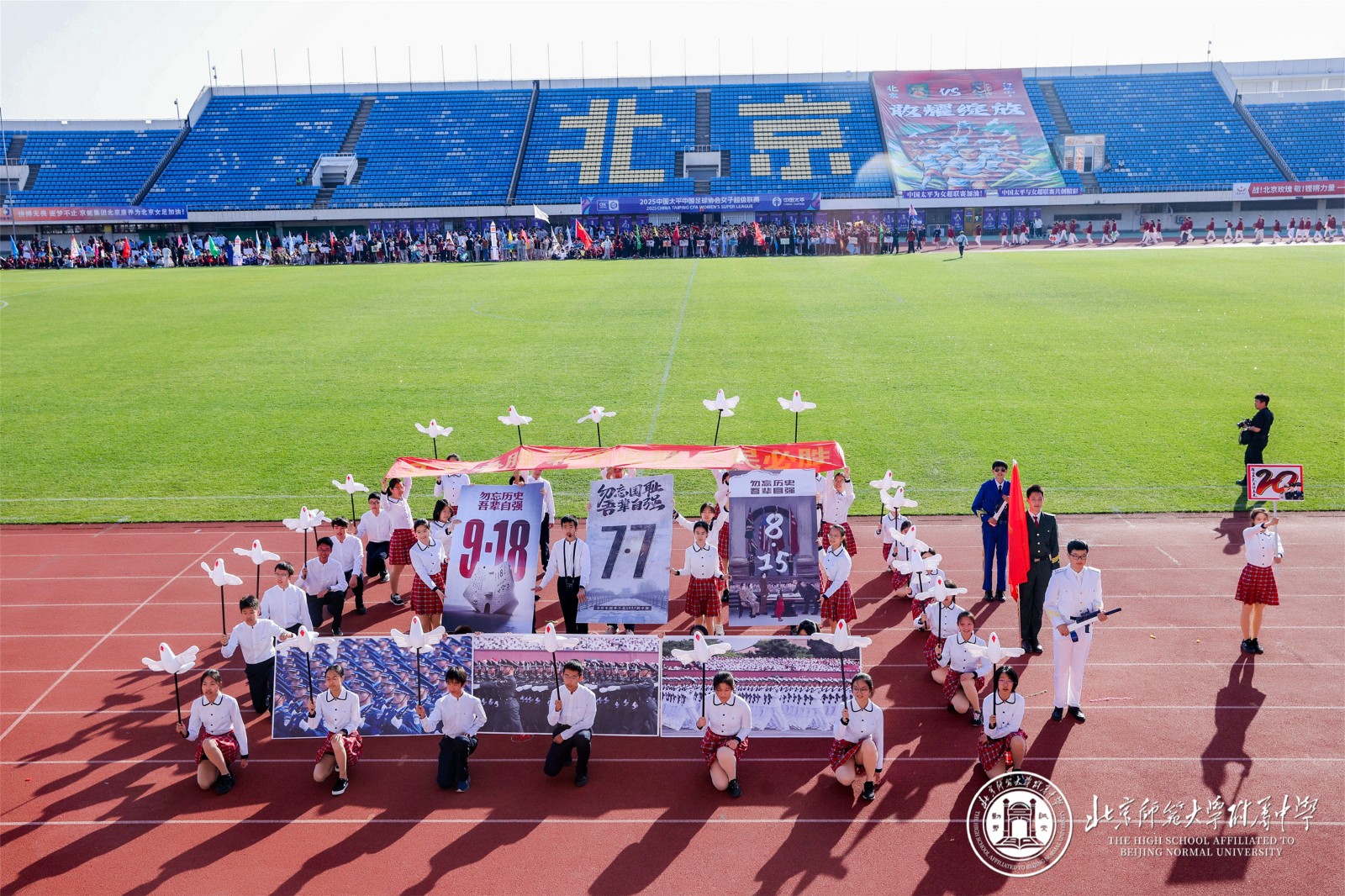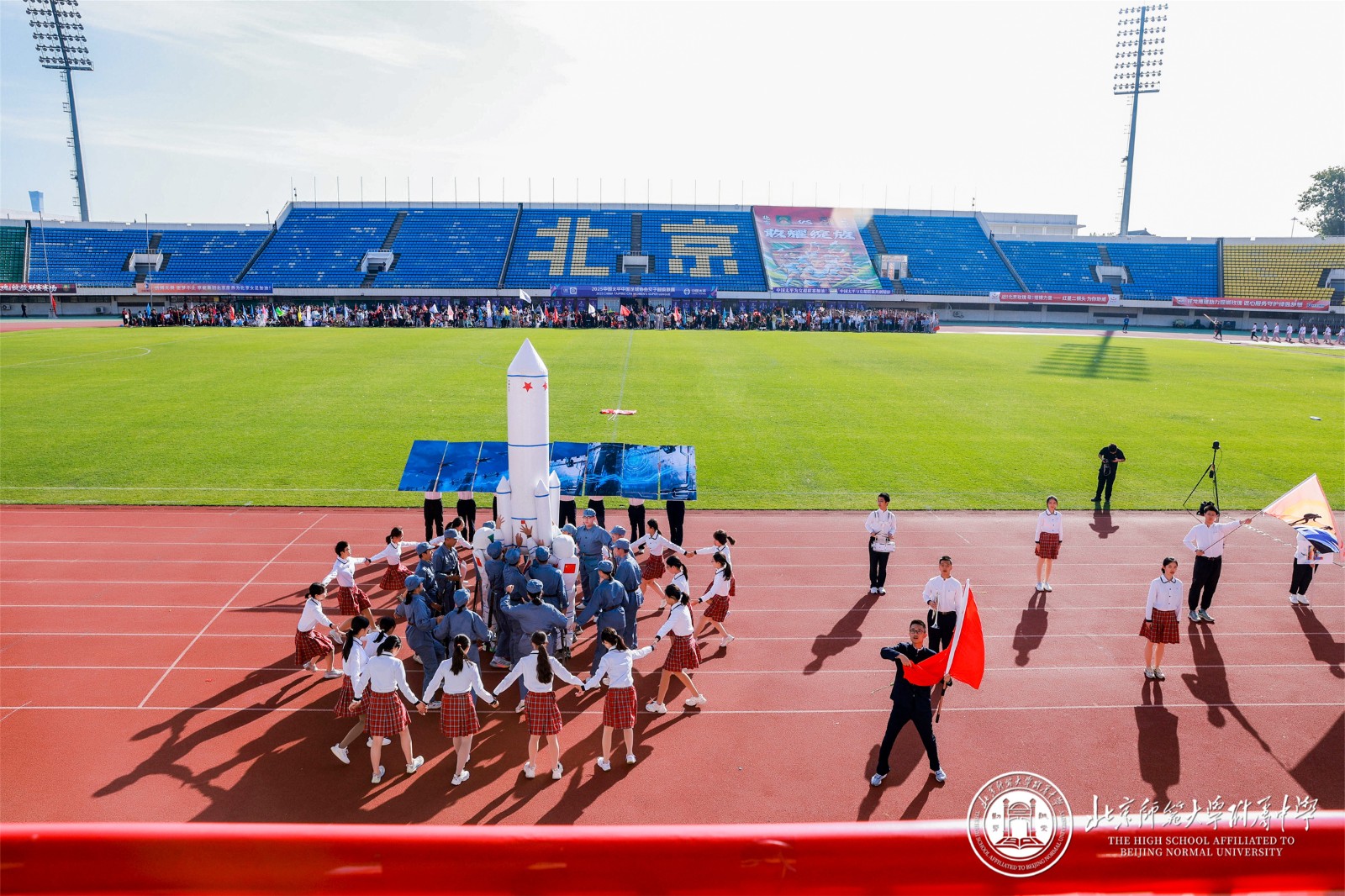 9 月 29 日,北京师大附中以 “铭记历史 开创未来” 为主题的秋季田径运动会在先农坛体育场隆重举行。阳光洒满赛场,旌旗迎风招展,全校师生齐聚于此,共同见证这场融合竞技激情与青春风采的体育盛会,以昂扬姿态铭记中国人民抗日战争暨世界反法西斯战争胜利 80 周年。
