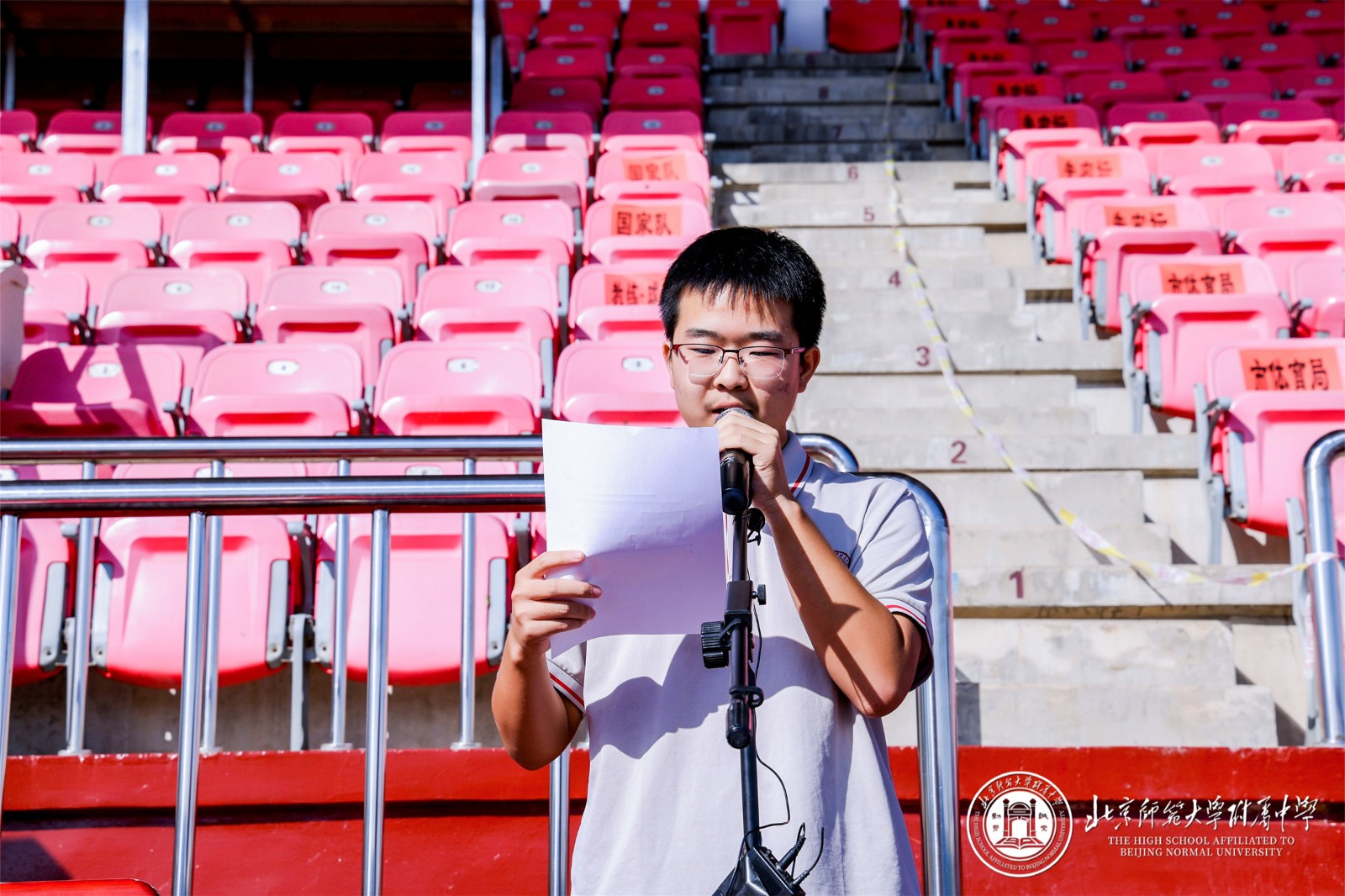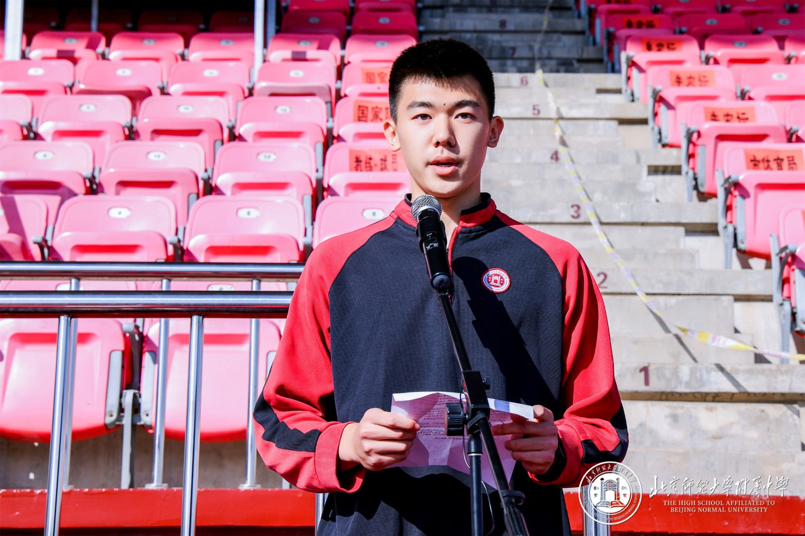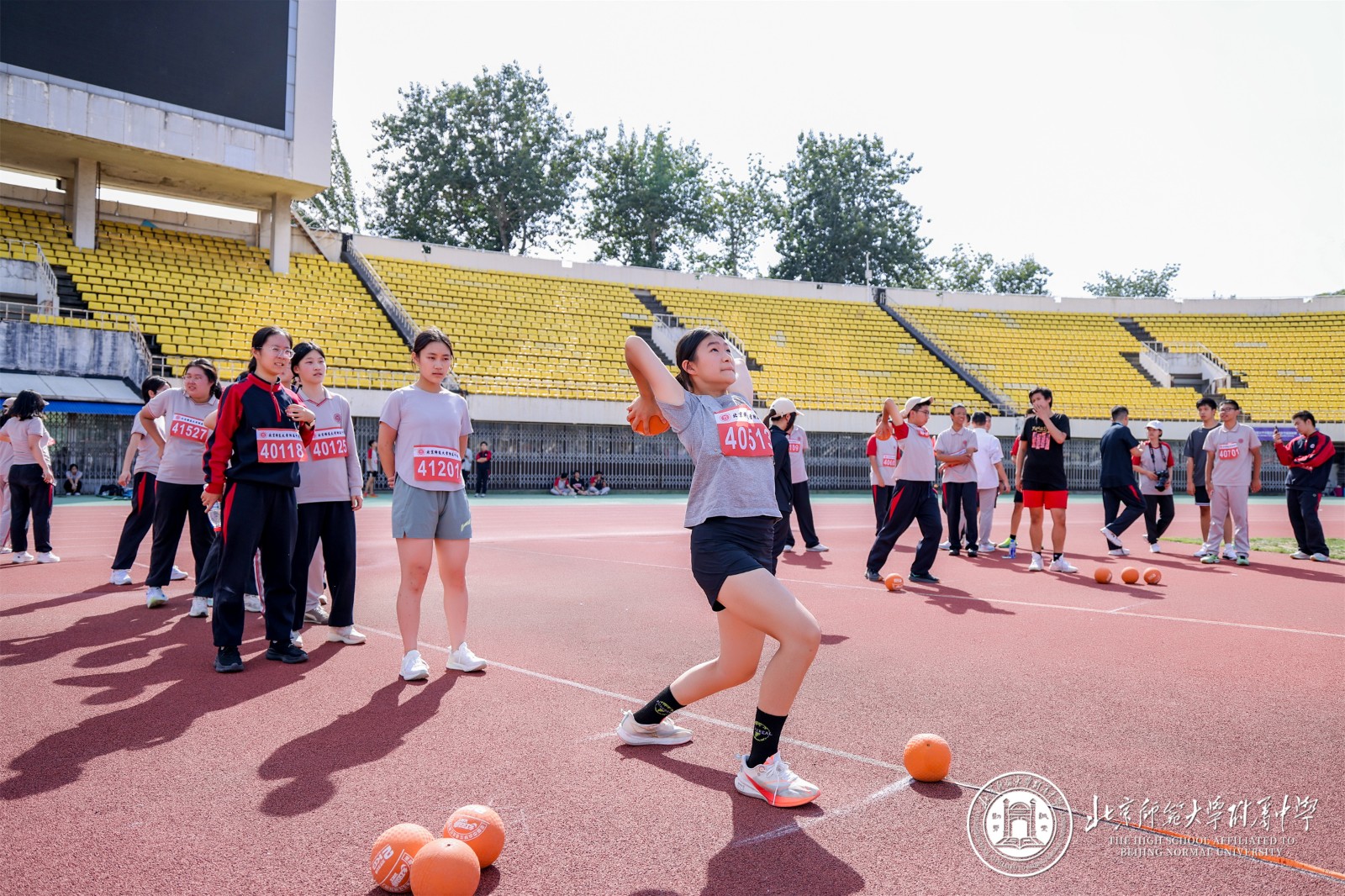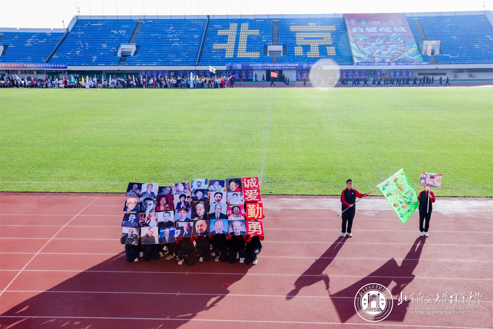 9 月 29 日,北京师大附中以 “铭记历史 开创未来” 为主题的秋季田径运动会在先农坛体育场隆重举行。阳光洒满赛场,旌旗迎风招展,全校师生齐聚于此,共同见证这场融合竞技激情与青春风采的体育盛会,以昂扬姿态铭记中国人民抗日战争暨世界反法西斯战争胜利 80 周年。