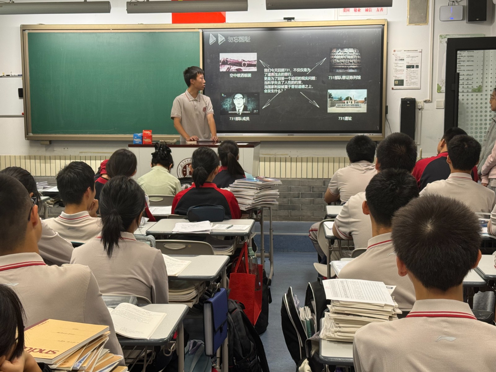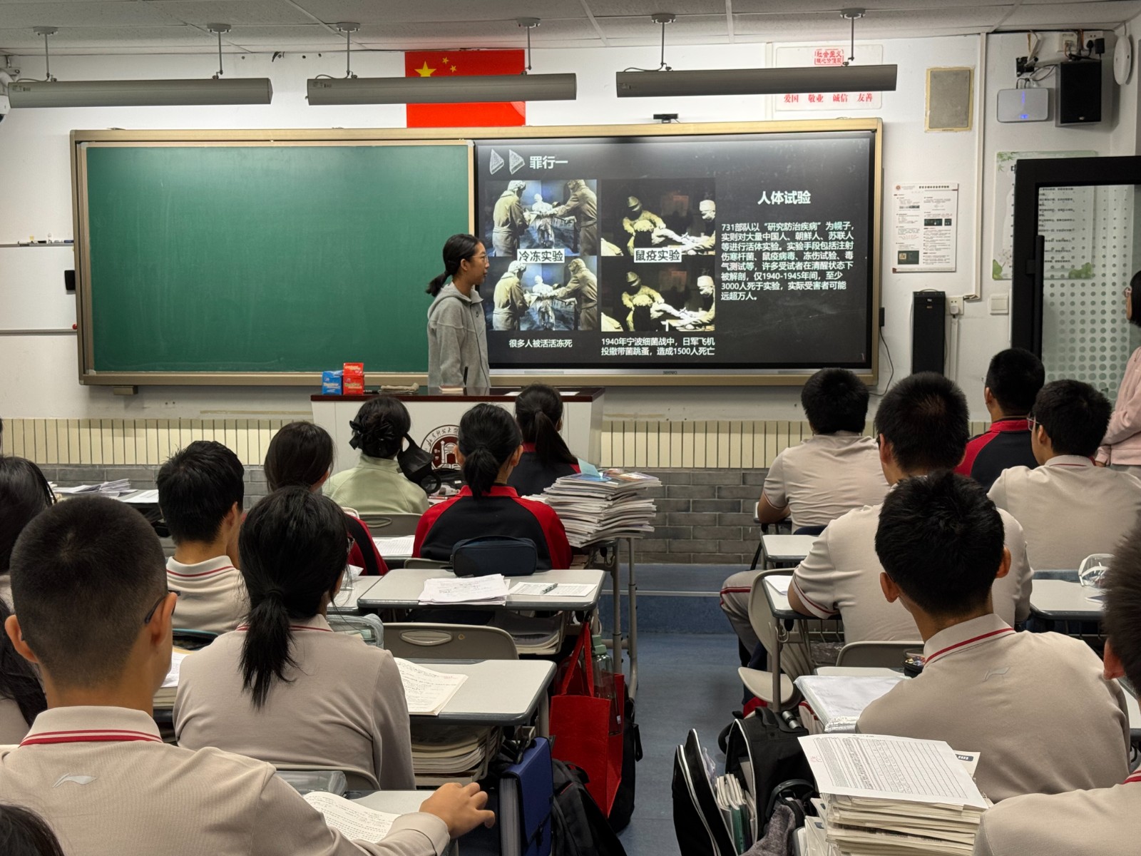 9 月18日,正值历史题材电影《731》全国院线公映首日,北京师范大学附属中学精心组织高一年级全体师生齐聚百年附中礼堂,与全国观众同步观看这部承载沉重历史记忆的影片,将一堂沉浸式、有温度的爱国主义教育课搬进了校园,让师生在光影之中回望历史创伤,传承爱国初心。