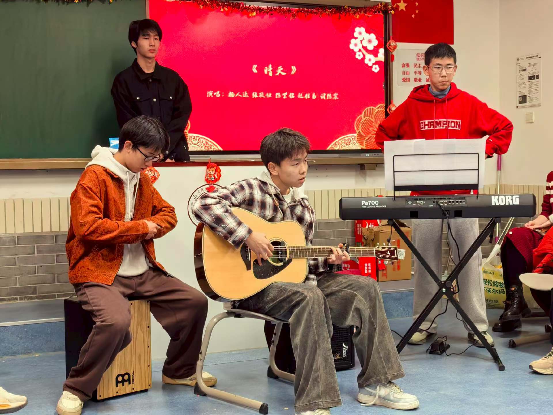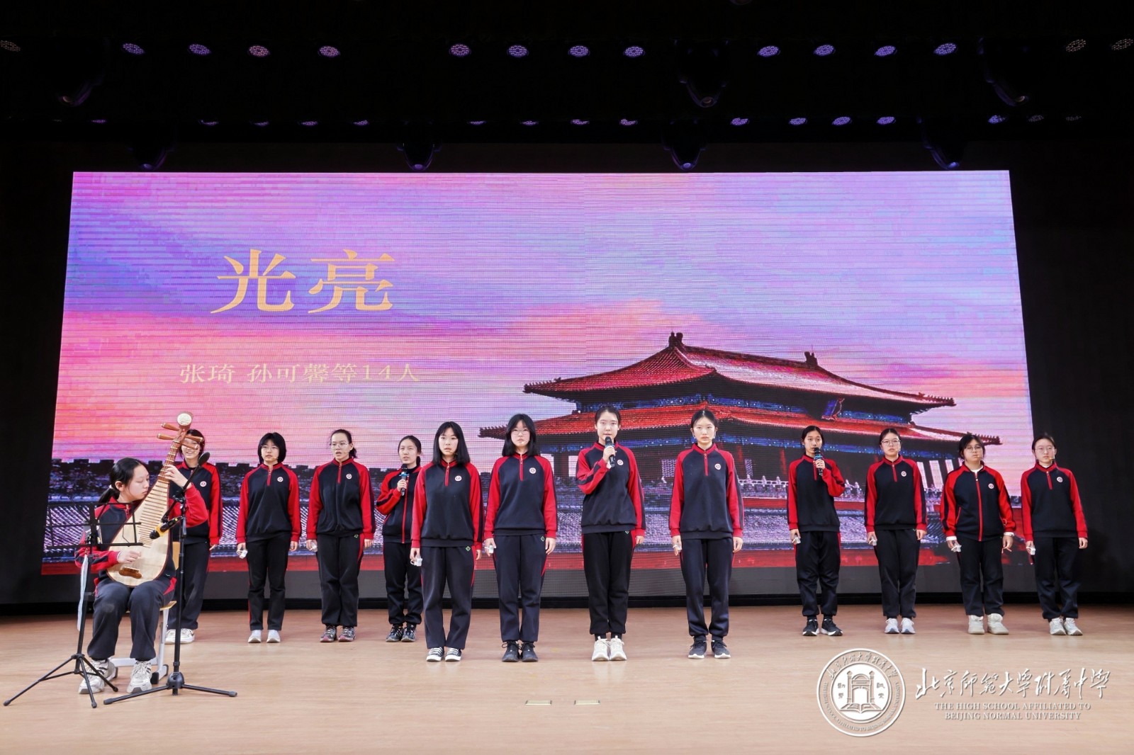 高二11班《光亮》以琵琶、小提琴与古筝交织,借“最渺小却最无畏”的歌词,传递新岁里冲破迷茫、向阳而生的信念,恰是新章开启时的无畏姿态;