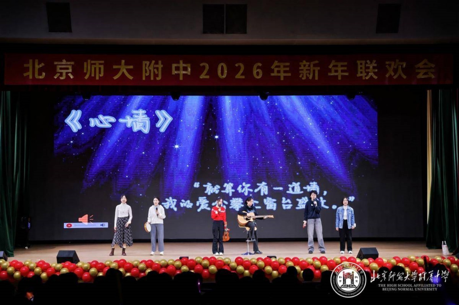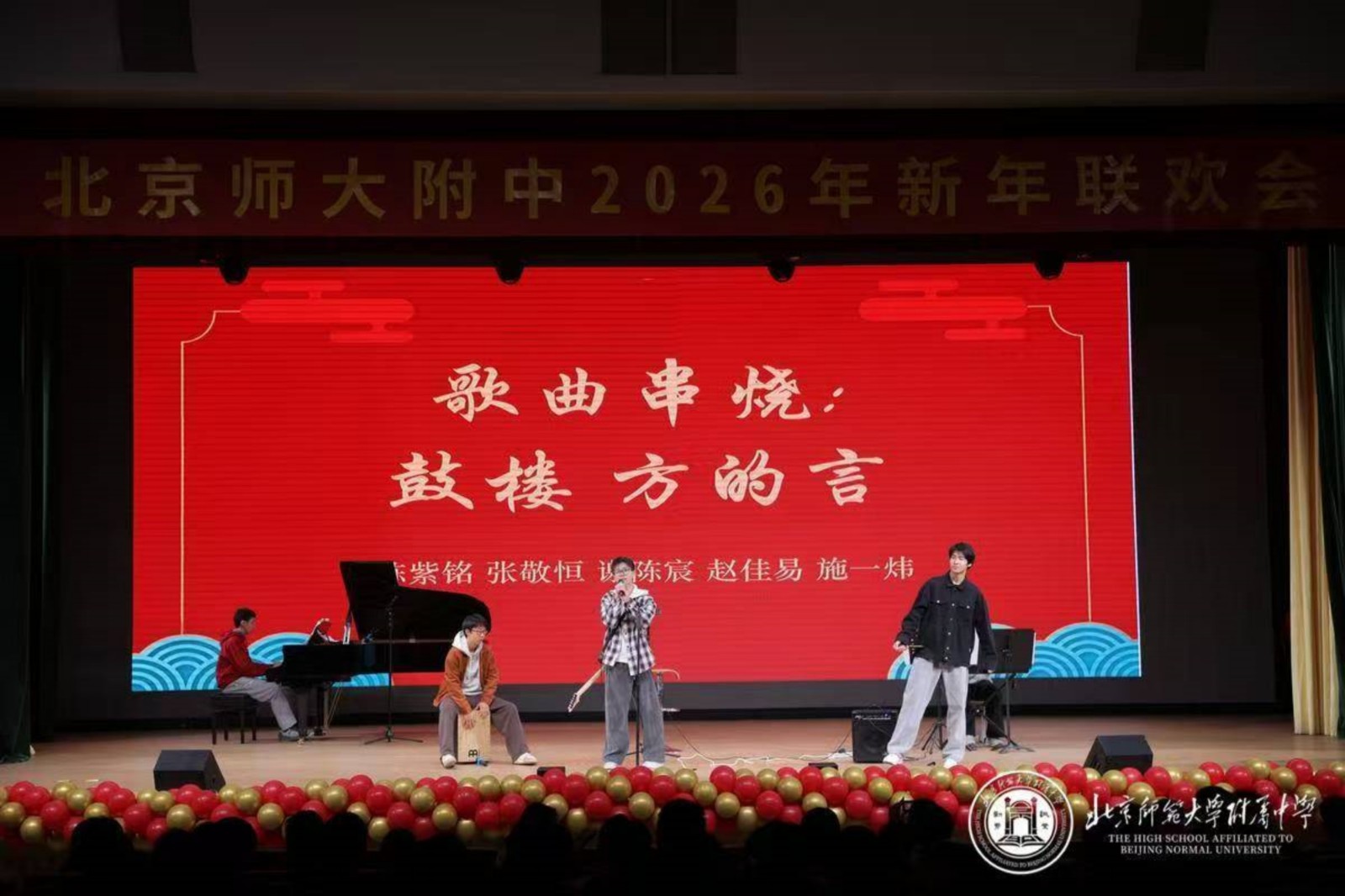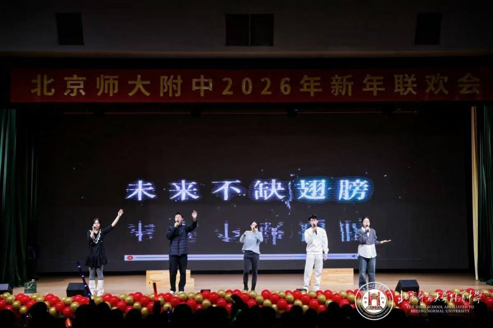 岁序更替,新元肇启。2025年12月30日下午,北京师大附中百年会堂暖意融融,高二年级“腾骧万里岁启新章”主题新年联欢会圆满落幕。全体师生欢聚一堂,以多元艺术演绎青春担当,凝聚奋进力量,在辞旧迎新的氛围中,共赴新岁之约。