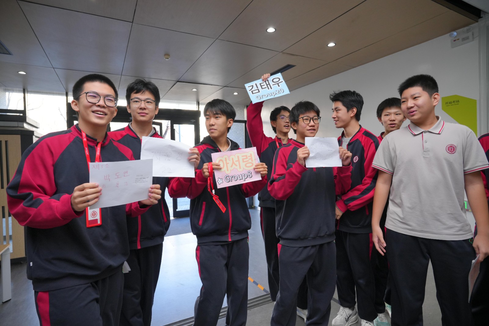 探访完东校区,同学们难以按捺期待,一路来到西校区。手中紧握着亲手制作的礼物,等待着中国学伴们的到来。而另一边,翘首以盼的中国学伴们也手持精心绘制的欢迎卡,热情地找寻各自的韩国伙伴。欢声笑语间,语言与文化的早已不是沟通的阻碍。