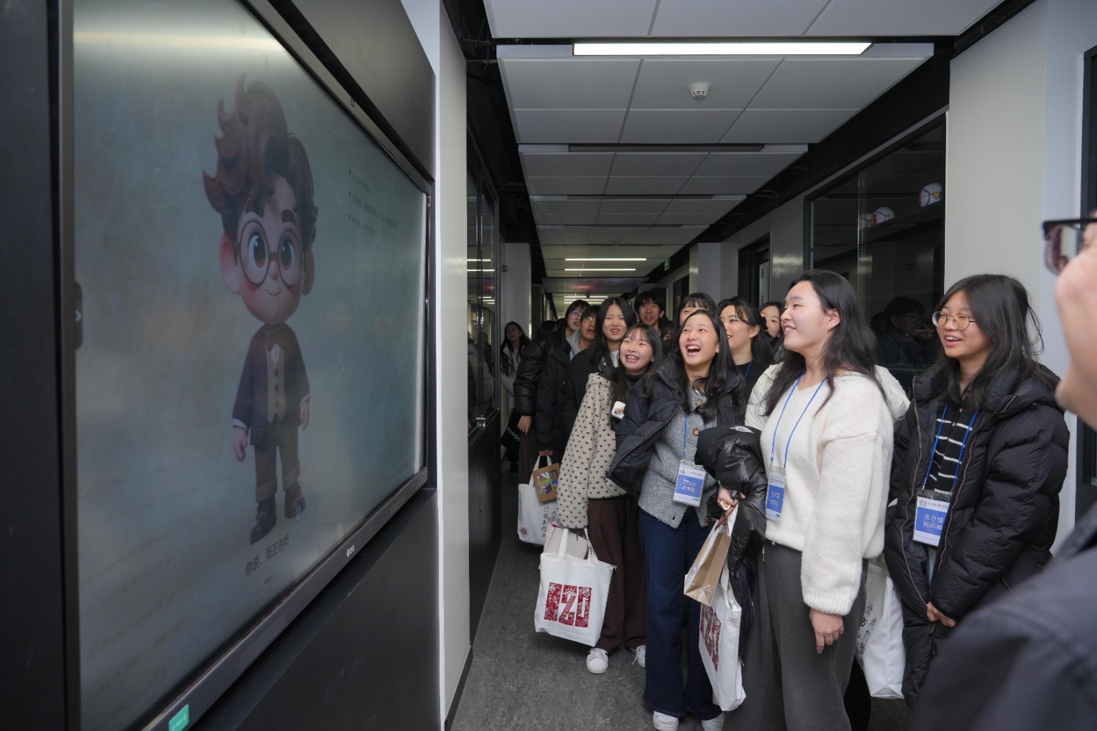 告别古朴厚重的“钱三杏”地标,一行人踏入充满现代科技氛围的教学楼;抬头可见梦幻的星空顶,墙面上的 AI 数字人能与同学们实时互动,就连元素周期表都以创新直观的形式生动呈现。美术教室里,随行老师介绍道少数民族传统服饰,以及墙上《山海经》画中三眼怪兽的神话渊源;科创实验室里,同学们收获了来自3D 打印机制作的专属礼物。传统韵味与现代科技的交融碰撞,令韩国师生赞叹不已。