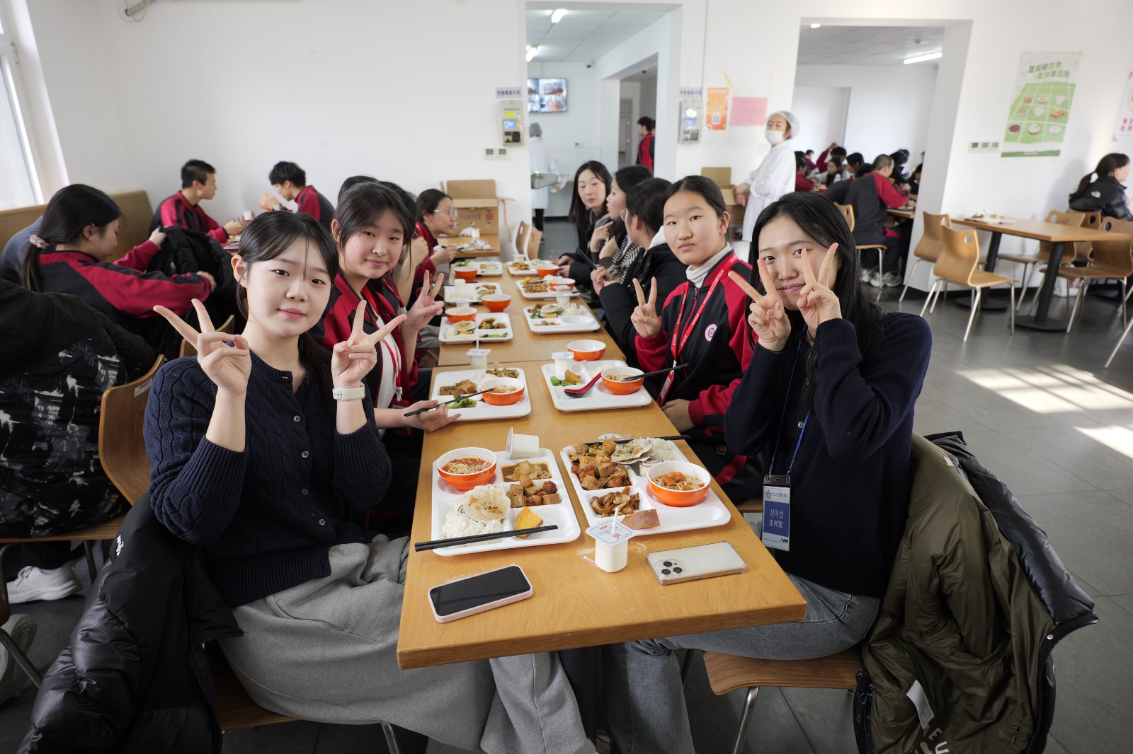 课程结束后,中国学伴们热情地邀请韩国伙伴一同前往食堂用餐。餐桌上,大家品尝着各式中国美食,围坐在一起愉快交谈,分享着彼此的校园生活与兴趣爱好。